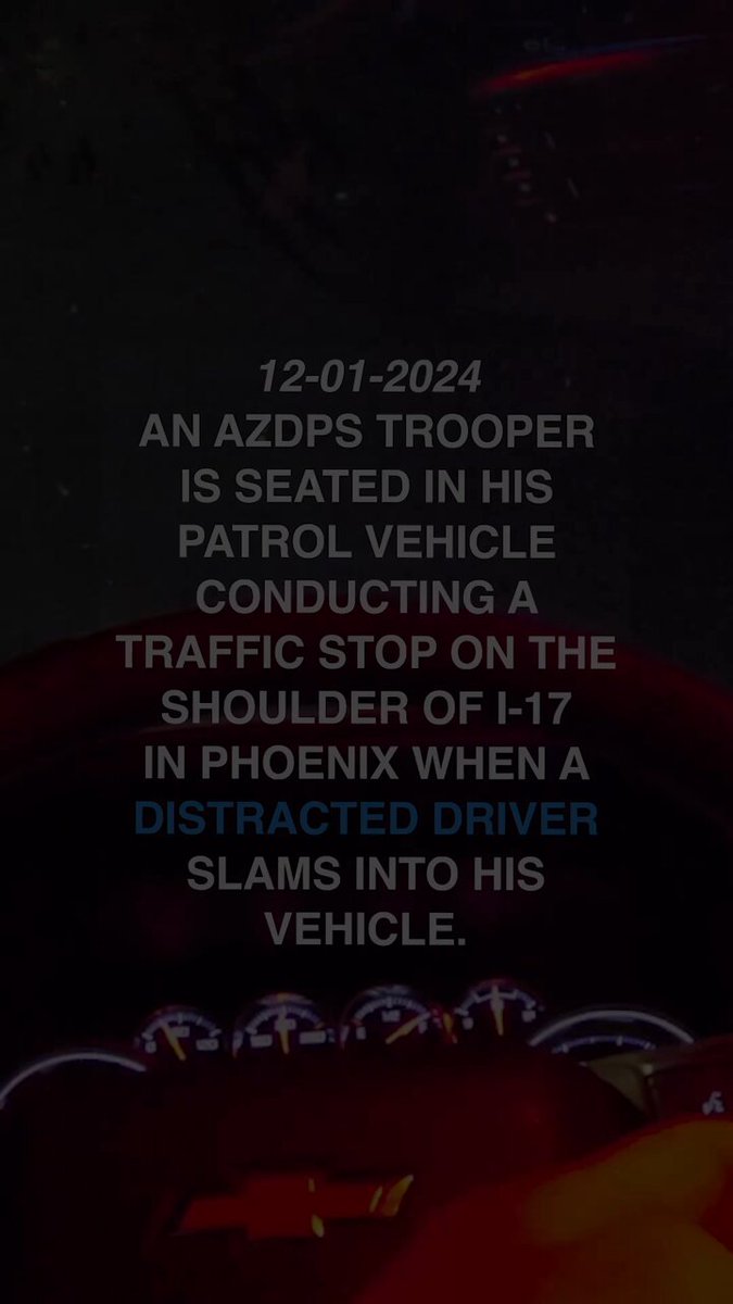 📵A distracted driver struck an AZDPS trooper while he was seated in his patrol vehicle during a traffic stop on the right shoulder of I-17 SB in Phoenix early last Sunday. The force of the crash caused the trooper's vehicle to strike the back of the car stopped ahead of him. pic.twitter.com/sGTCYZKftD